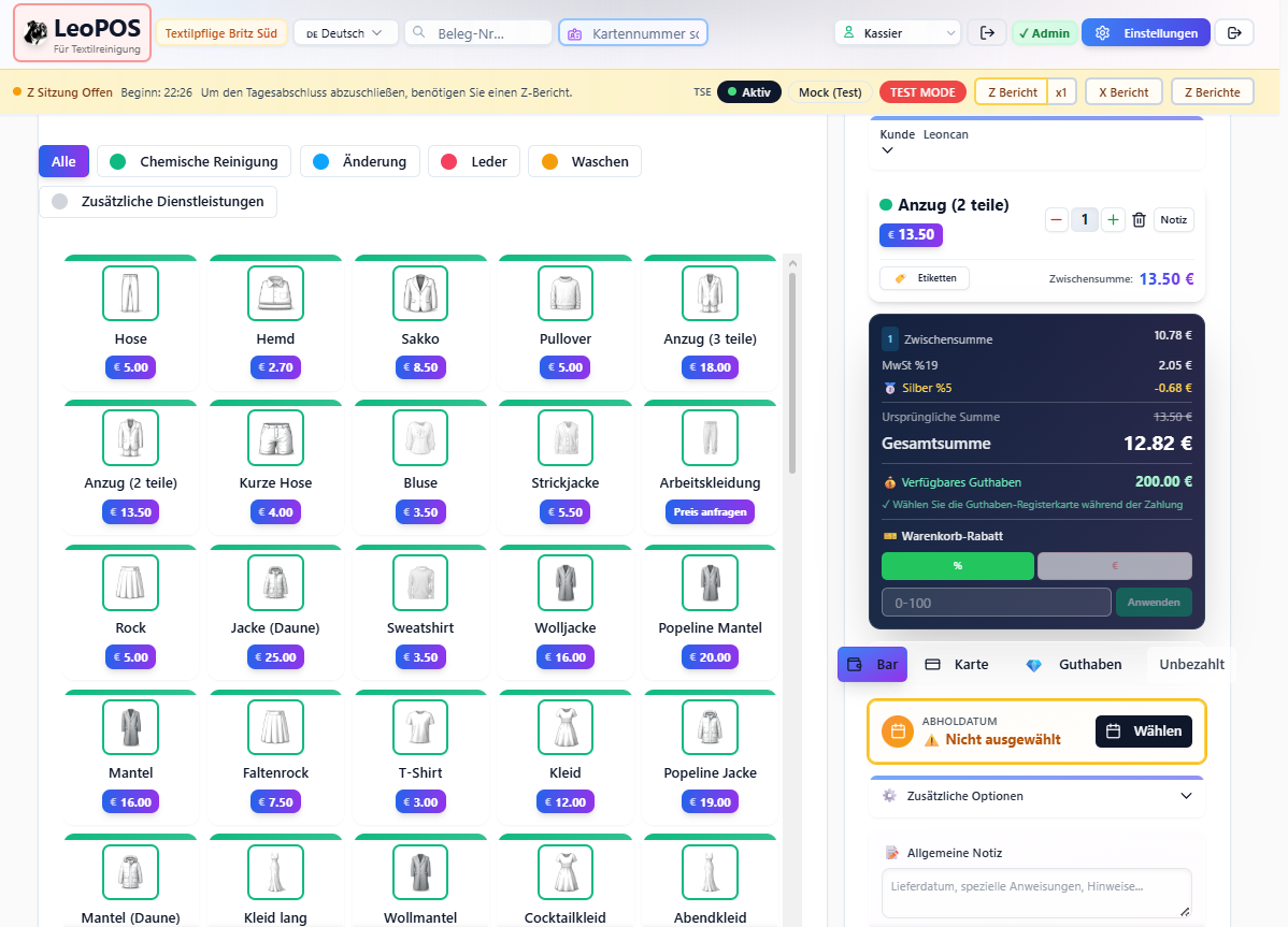 LeoPOS speeds up dry cleaning operations. Orders, deliveries, notes, and reports live in one place.